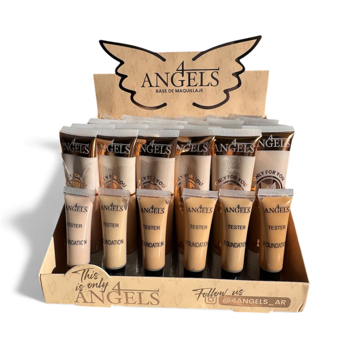 La Base de Maquillaje 4 Angels está diseñada para lograr un acabado natural, uniforme y de alta cobertura sin sensación pesada. Su fórmula ligera se adapta muy bien a distintos tipos de piel, permitiendo un look prolijo durante todo el día. Ideal para uso diario, profesional o armado de kits.