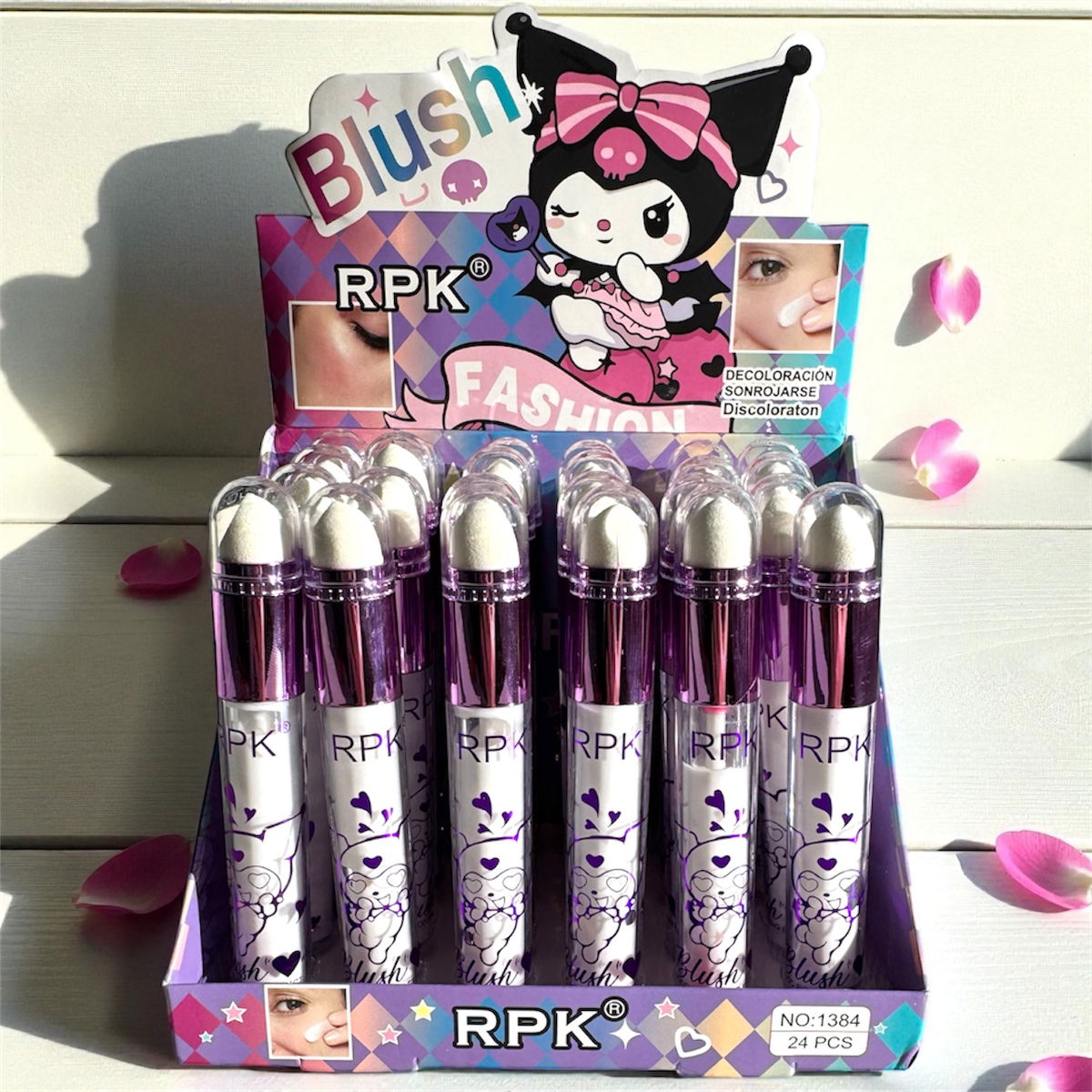 El diseño kawaii con personaje estilo Kuromi lo convierte en un producto súper atractivo para regalos, cumpleaños, kits infantiles o uso personal. Su formato en stick es práctico, limpio y cómodo de aplicar directamente sobre mejillas.