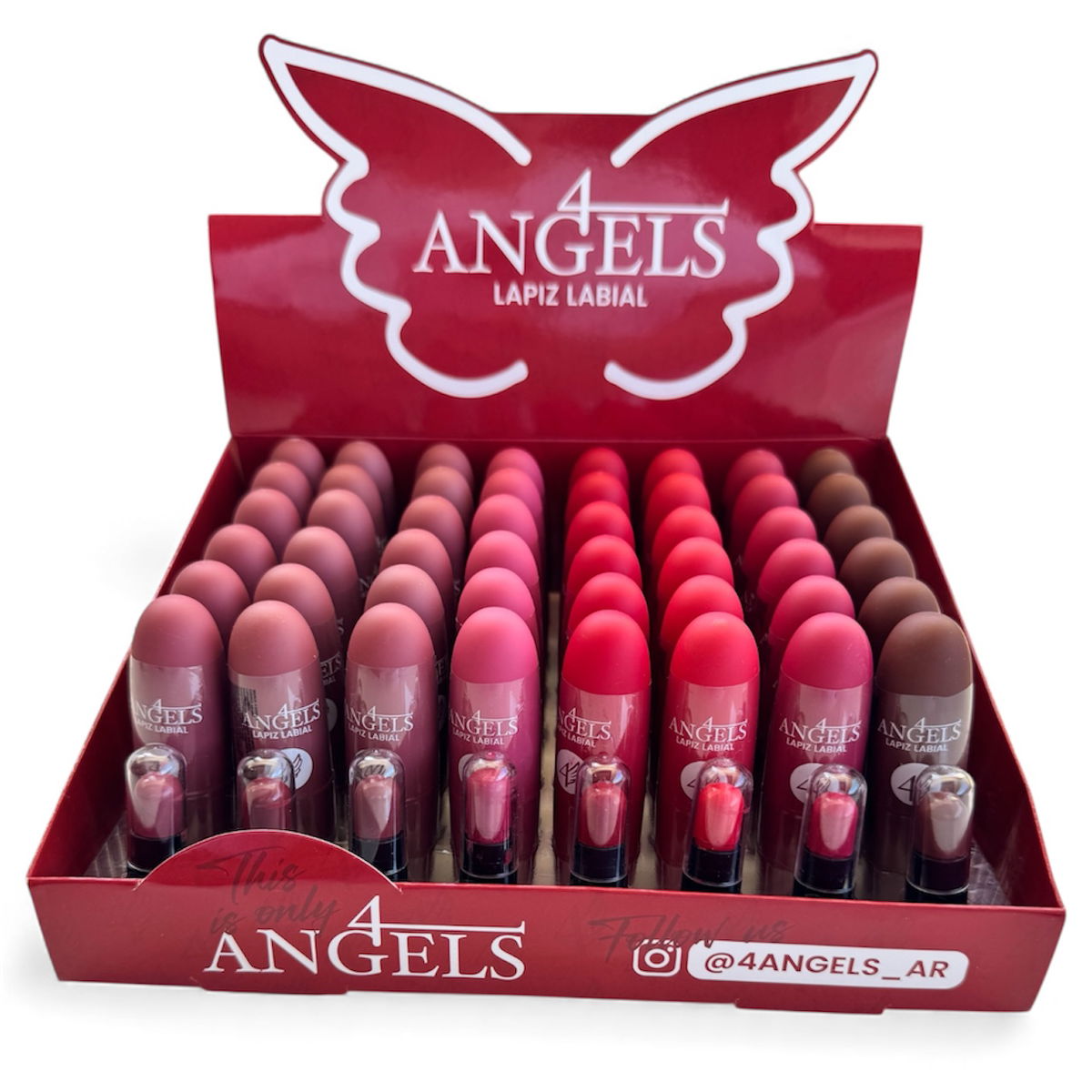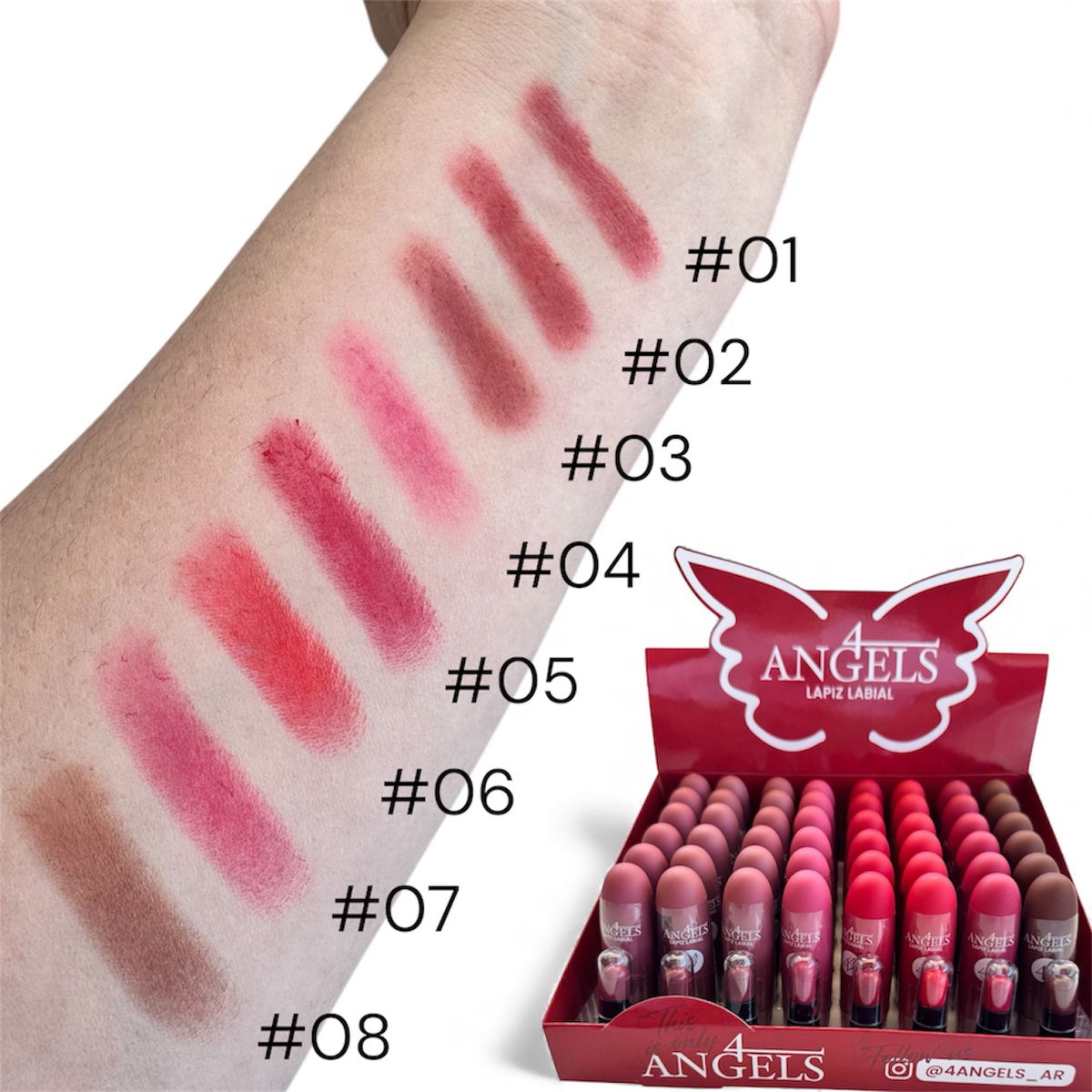Descubrí los Lápices Labiales 4 Angels, creados para quienes buscan un labial práctico, cómodo y con colores que favorecen a cualquier tipo de piel. Su textura cremosa se desliza fácil, no reseca y deja un acabado prolijo que realza los labios al instante.