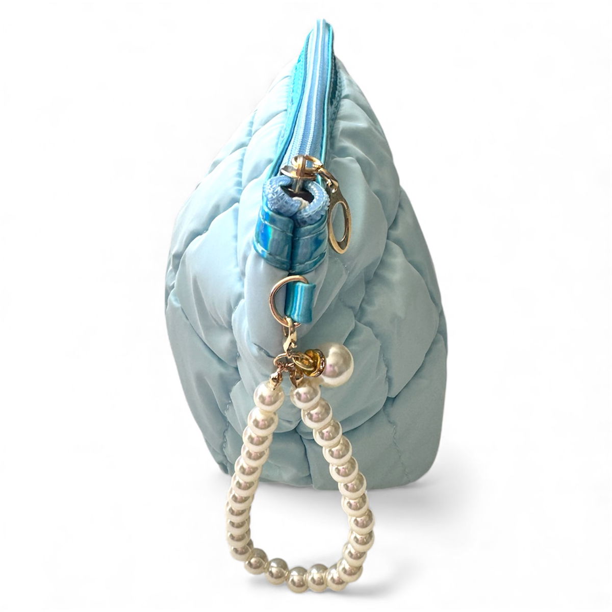 Este neceser puffer es el match ideal para organizar maquillaje, skincare y accesorios con estilo. Su diseño acolchado tipo puffer aporta textura y tendencia, mientras que la manija de perlas le suma un toque glam que lo hace superinstagrameable.