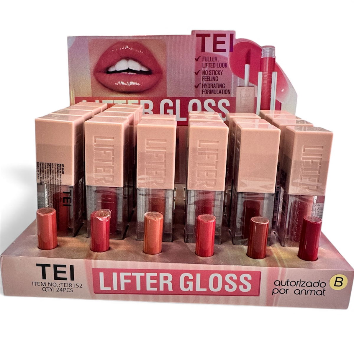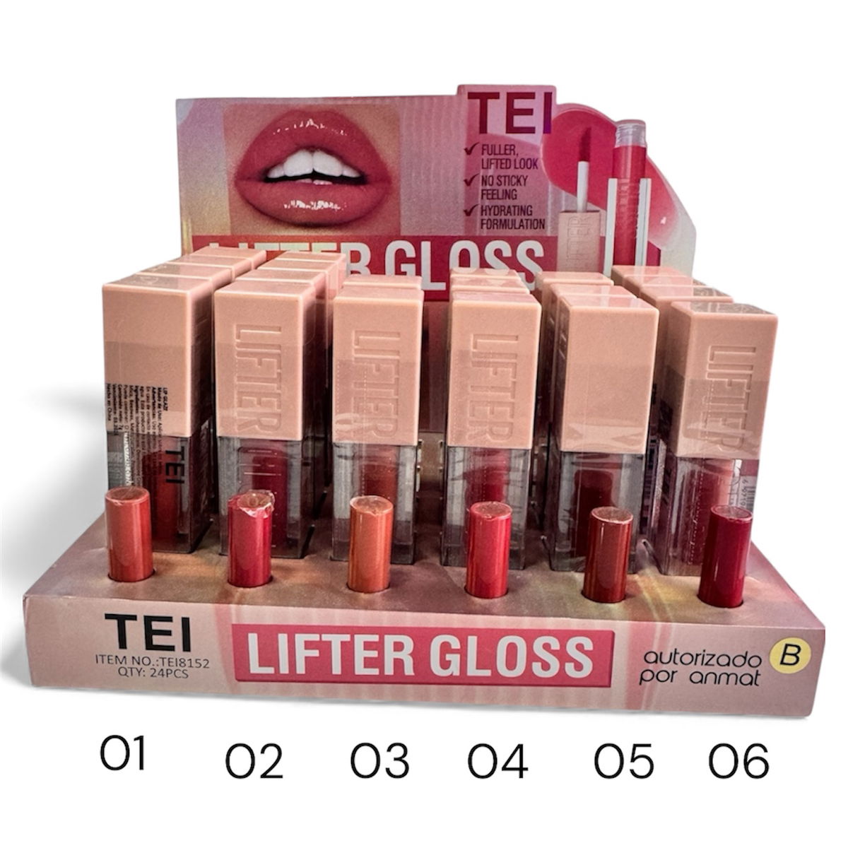 Lifter Gloss TEI: brillo extremo con efecto volumen, fórmula hidratante y cero sensación pegajosa. Deja los labios suaves, jugosos y con acabado profesional. Disponible en 6 tonos increíbles.
