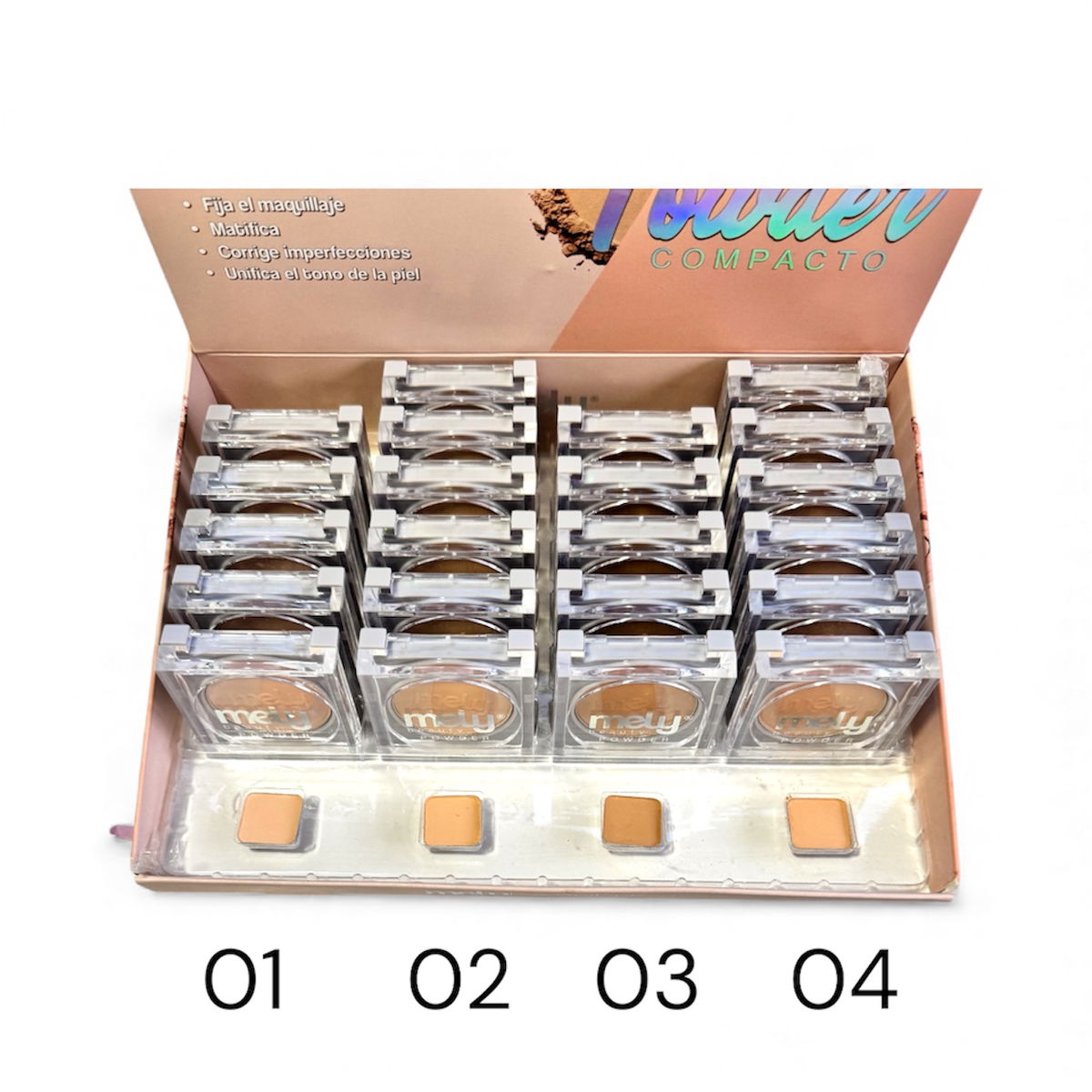 Polvo Compacto Mely Beauty: fija el maquillaje, matifica sin resecar y unifica el tono para un acabado suave, parejo y profesional durante todo el día.