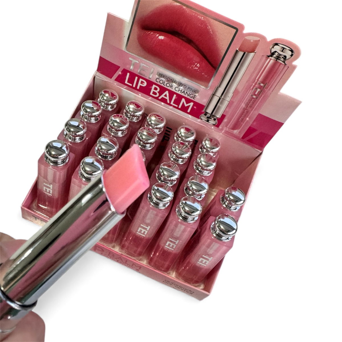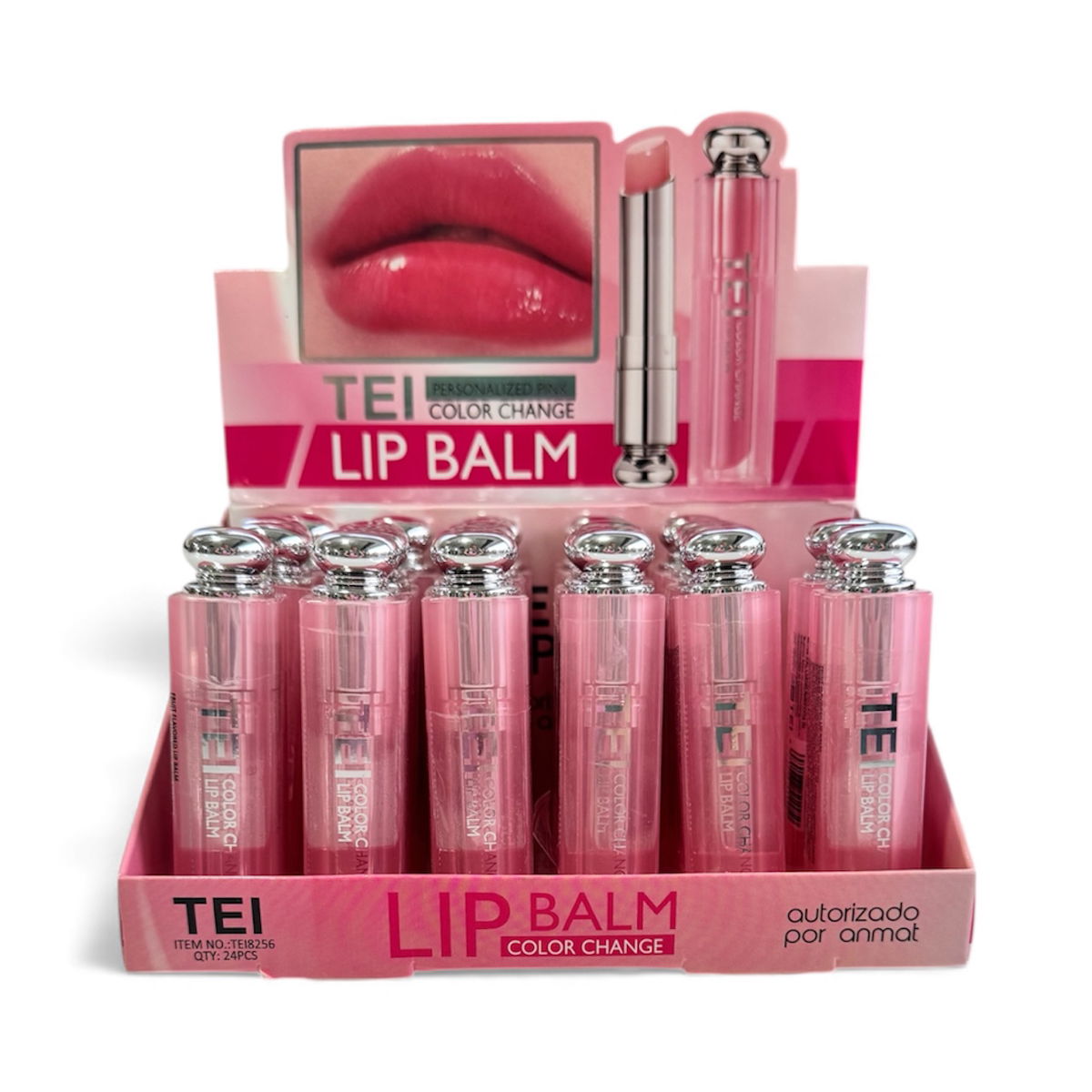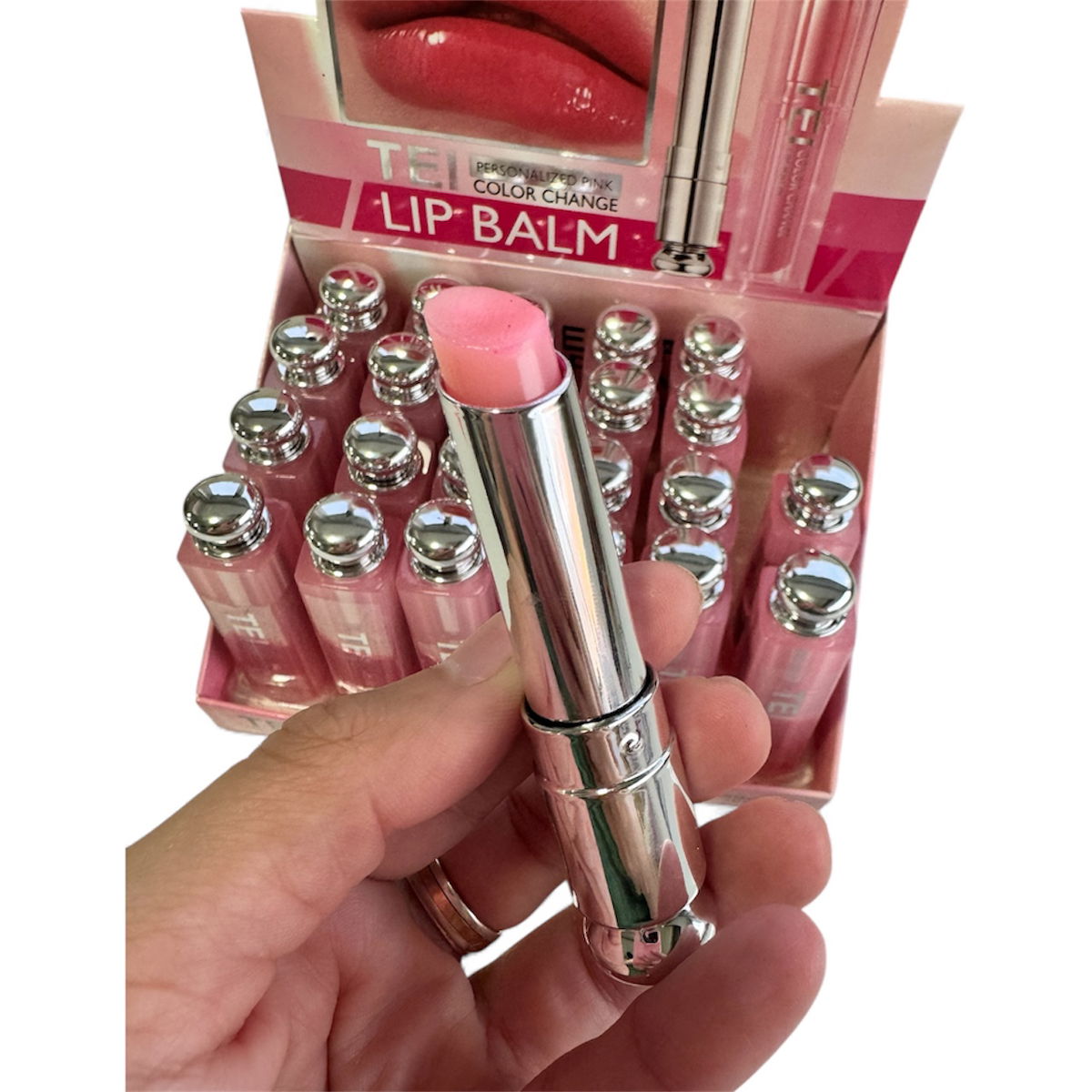 Lip Balm TEI Color Change: hidrata, suaviza y realza los labios con un tono rosado que se adapta a tu pH. Textura ligera, efecto natural y brillo saludable todo el día.